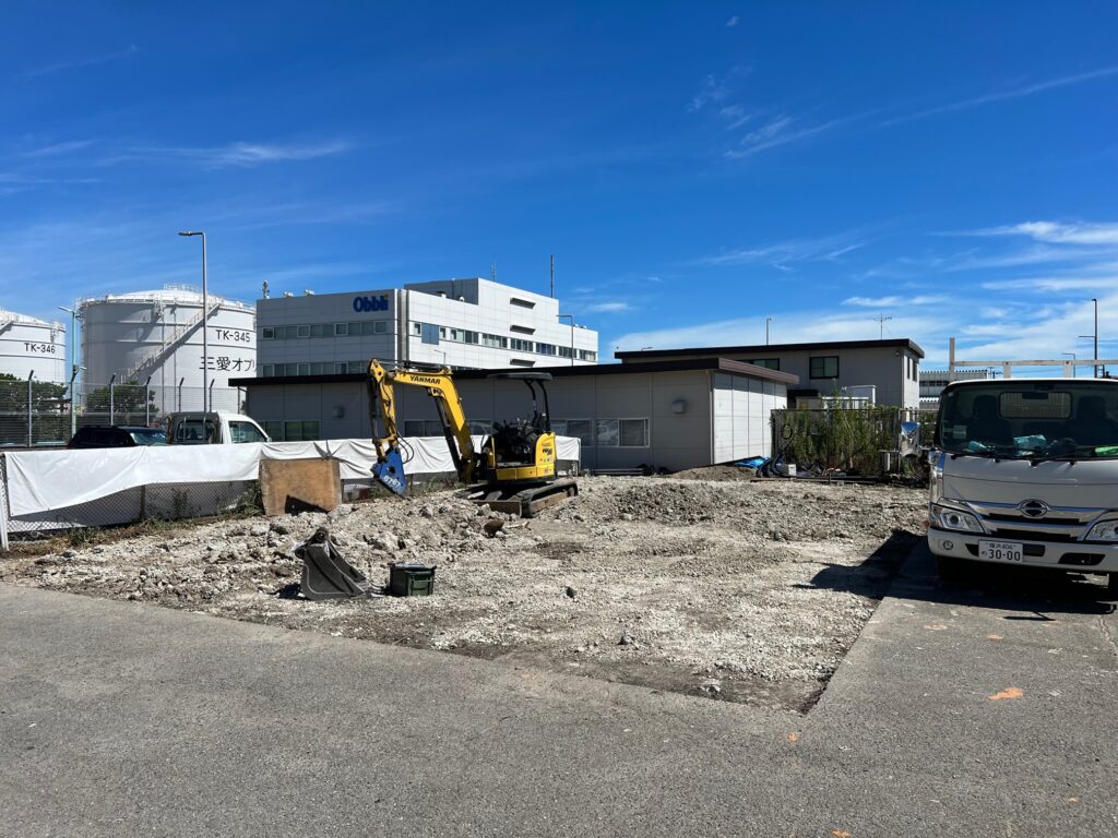 C棟エリアの解体が完了し、基礎工事が始まります。