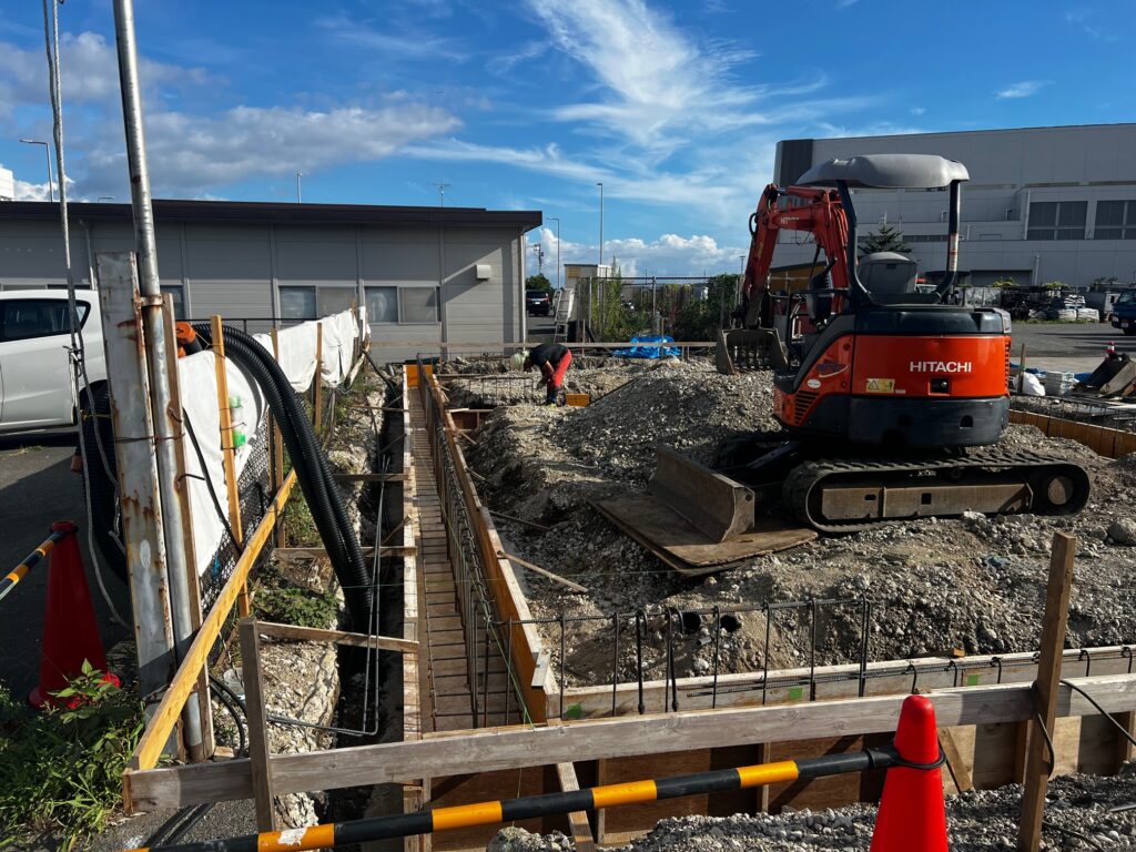 C棟は、引き続き基礎工事を行っています。