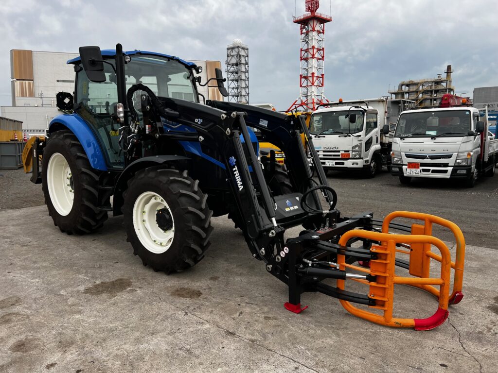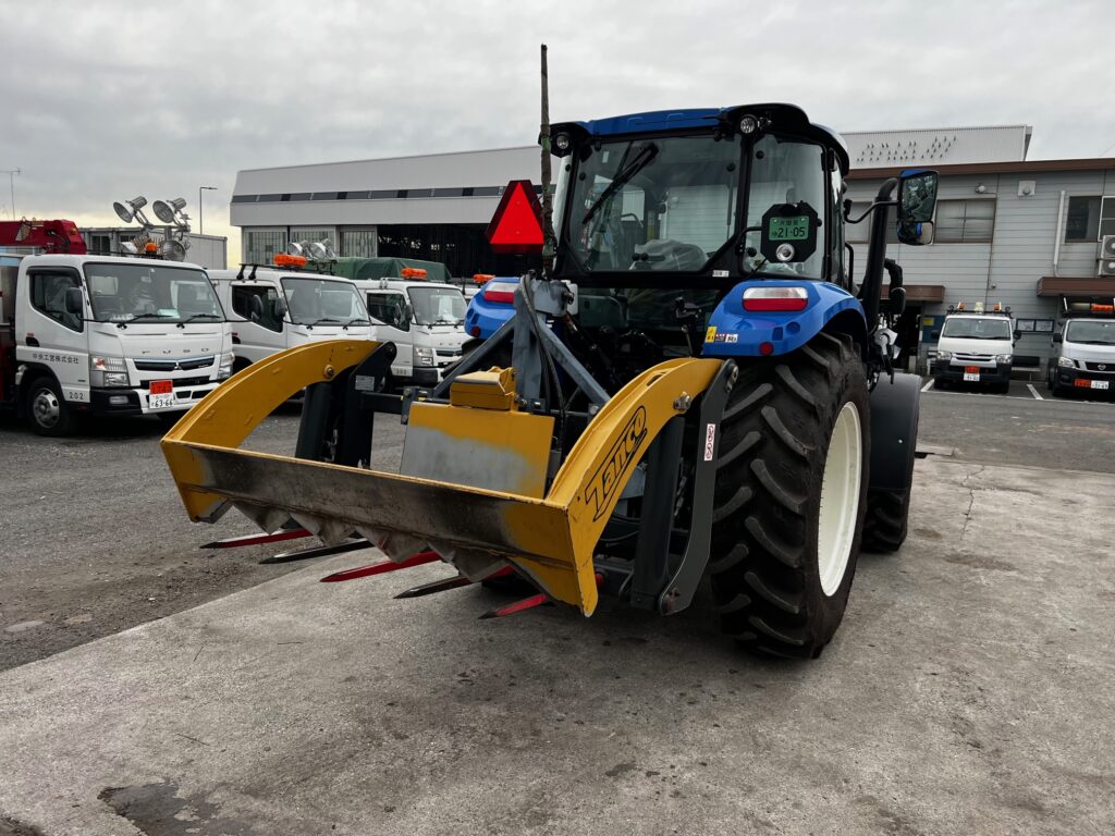 このトラクターは、夜間の草刈作業でロール状に梱包され、刈草置き場まで運搬されたロールを