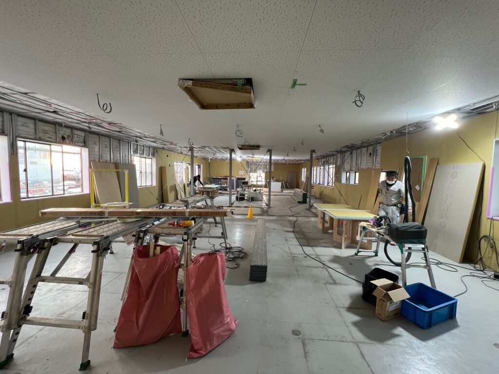 東京空港作業所改修工事-19 2023 12/25 2023年12月25日 A棟改修 1F・2F壁下地 A棟の1階と2階の壁下地の取付がほぼ完了し、天井の化粧天井ボードの取付も完了しました。 A棟全景 A棟1F 給湯室・トイレ A棟2F全景 A棟2F入口 A棟2F給湯室・トイレ A棟2F仮眠室・書庫 東京空港作業所改修工事 東京空港作業所改修工事-18 東京空港作業所改修工事-20 関連記事 東京空港作業所改修プロジェクトについて 2023年7月3日 東京空港作業所改修工事-1 2023年7月10日 東京空港作業所改修工事-2 2023年7月18日 東京空港作業所改修工事-3 2023年7月24日 東京空港作業所改修工事-4 2023年8月2日 東京空港作業所改修工事-5 2023年8月15日 東京空港作業所改修工事-6 2023年8月28日 東京空港作業所改修工事-7 2023年9月4日