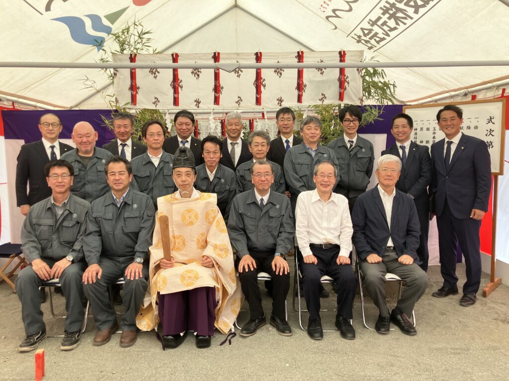 去る7月8日、新本社予定地(大田区羽田5丁目5-30)において、穴守稲荷神社の神職をお招きして地鎮祭が厳かに執り行われました。式典は、工事の施工者となる大洋建設㈱様に主催していただき、設計・監理をお願いする㈱K&T一級建築士事務所の皆さまや当社関係者ら総勢約20名が参列して工事の安全を祈願しました。