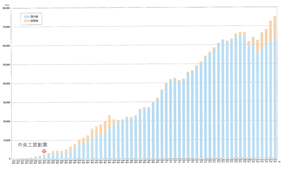 | 1978 | 資本金を1,500万円へ増資 | 成田空港の開港に伴い国際線が移転 | |